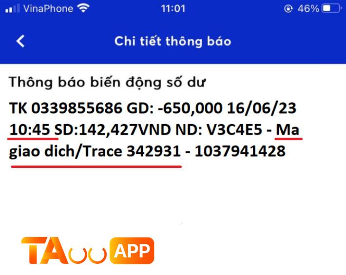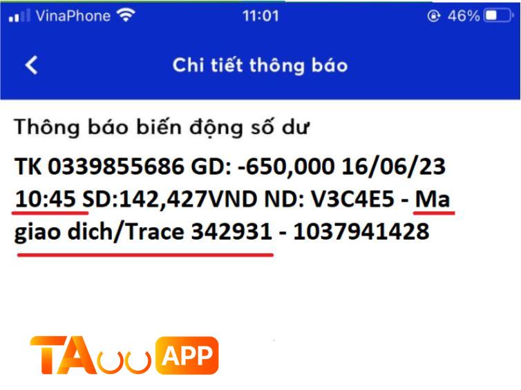 · Mã Trace hoặc Mã điện toán (gồm từ 6 đến 8 số).