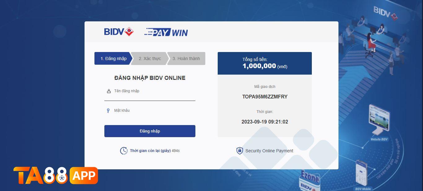 Các bước nạp tiền Paywin Ta88 qua Ngân hàng BIDV