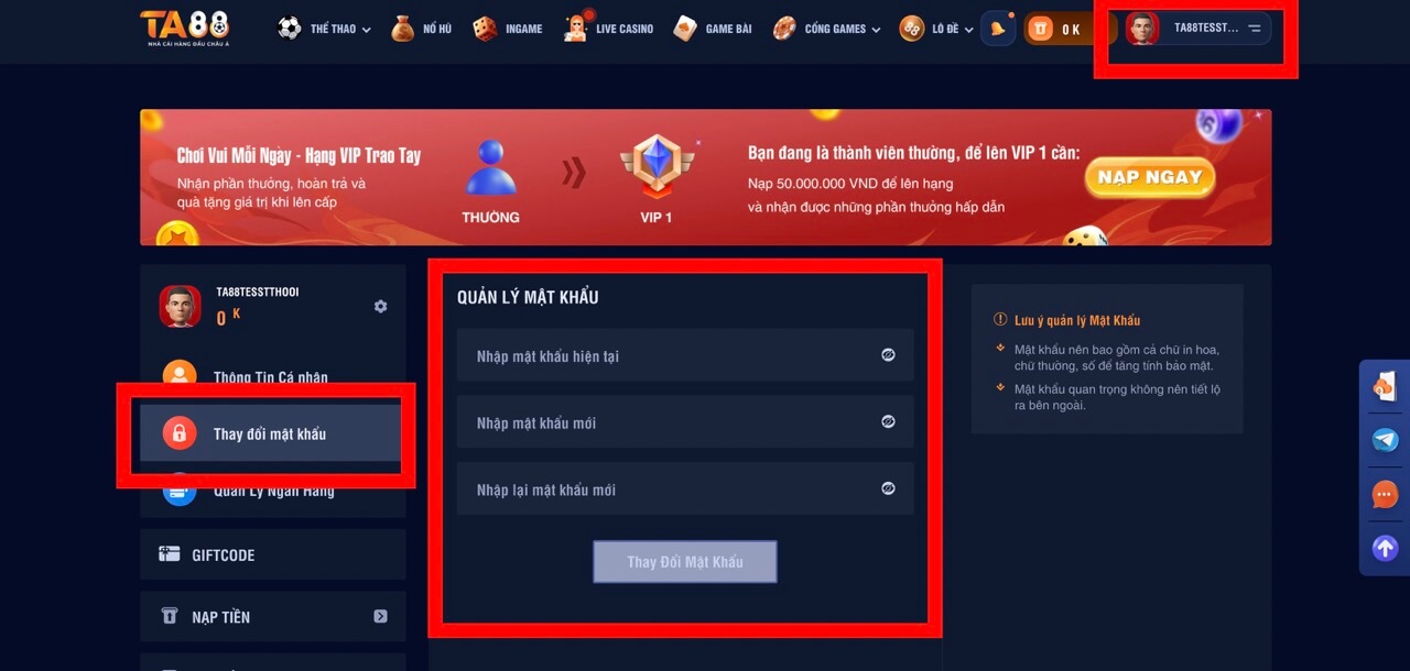 Cách đổi mật khẩu Ta88